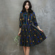 条纹连衣裙女韩国代购百褶543修身九分袖复古中长款裙子2017春装