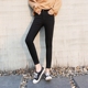 春季外穿高腰黑色学生韩版牛仔裤女九分裤紧身薄绒显瘦铅笔小脚裤