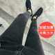 韩国代购八分高腰紧身牛仔裤女九分裤显瘦毛边黑色小脚铅笔裤靴裤