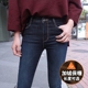 韩国代购春秋深蓝色高腰牛仔裤女九分裤紧身黑色铅笔小脚裤显瘦潮