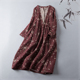 墨下初心 春夏新品 复古中式印花斜襟盘扣棉麻连衣裙 中袖旗袍