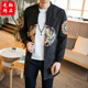 春季中国风龙袍刺绣青年男士夹克男胖子外套薄款加肥加大码男装潮