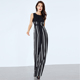 心语泉黑白竖条纹雪纺连体阔腿裤女裤2017夏季长裤高腰休闲连体衣