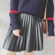 摩妮卡大码女装2017春装胖MM显瘦200斤韩版黑色百褶皮裙半身裙