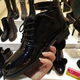 韩国女鞋代购2017新款皮带扣粗跟单鞋圆头防滑漆皮亮面系带高帮鞋