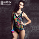 范德安钢托小胸聚拢连体游泳衣女 修身显瘦遮肚保守碎花大码泳装