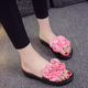 拖鞋女夏时尚性感花朵韩版松糕坡跟外穿防滑厚底超高跟一字沙滩拖