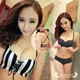 日系性感前绑带深V时尚牛仔蕾丝文胸聚拢薄款侧收调整女内衣套装