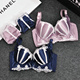 日系甜美蕾丝文胸绸缎性感深V小胸超聚拢加厚三排扣少女内衣套装