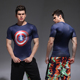 包邮超级英雄系列美国队长盾牌钢铁侠运动短袖夜跑紧身衣骑行服