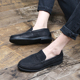 夏季一脚蹬磨砂牛皮懒人鞋休闲套脚乐福鞋皮鞋复古流苏豆豆鞋男鞋