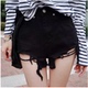 韩版时尚百搭薄款不规则修身显瘦AA高腰毛边流苏牛仔短裤女阔腿裤