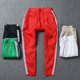 欧洲站2017春季新款侧条纹松紧腰糖果色宽松棉麻薄款九分裤哈伦裤
