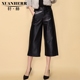 秋冬皮裤阔腿裤女九分裤阔腿皮裤女外穿高腰皮阔腿裤黑色长裤薄款