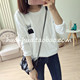 3件包邮韩国订单卡通减龄款宽松中长款插肩袖打底衫长袖T恤女款M