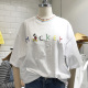 2017春装新款韩国nena时尚百搭韩风亮亮面料图案印花短袖T恤女