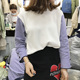 2017初春新款韩国EJOBAS时尚百搭韩风拼接条纹袖显瘦针织衫女潮