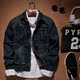 春季牛仔外套男韩版复古修身牛仔上衣青年夹克立领日系牛仔服潮男