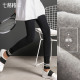 七格格2017春装新款街头脚口罗纹拼接磨毛修身显瘦打底裤L119