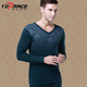 保暖内衣男 男士秋衣秋裤套装 纯棉V领纯色棉毛衫薄款修身打底