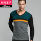 秋冬薄款男士长袖V领内衣单件纯棉修身打底衫女士莱卡棉打底上衣