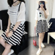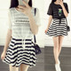 韩版夏季小清新条纹连衣裙女短袖雪纺罩衫吊带背心裙两件套装裙子