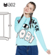 a02商场同款玩味少女系大眼猫图案套头卫衣 D1R1A1091KT