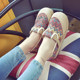 民族风女鞋厚底帆布鞋女韩版学生布鞋休闲鞋一脚蹬懒人鞋涂鸦板鞋