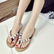 2017新款夏款夹脚趾凉鞋女韩版拖鞋串珠花朵平底露趾沙滩鞋学生鞋