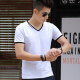韩版夏季新款男士短袖T恤V领纯棉修身纯色青年男装体恤鸡心领潮流