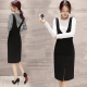2017春装新品韩版中长款休闲宽松显瘦假两件套打底中裙长袖连衣裙