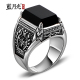 蓝月光s925银复古泰银橄榄枝合成黑玛瑙男士戒指个性食指单身指环