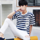 2017新款夏季t桖男短袖衣服男士圆领条纹体恤半截袖潮打底衫上衣