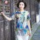 妈妈装夏装短袖套装 中老年女装短袖T恤 优雅两件套大码宽松印花