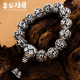 【鲁银坊】990足银六字真言男纯银手链 情侣复古佛珠女心经银手串