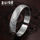【鲁银坊】S999足银纯银宽版手镯 大悲咒佛经开口银手镯 心经银饰