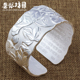 【鲁银坊】S999足银宽版纯银手镯 女超宽面手工雕刻牡丹花银手镯