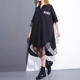 2017春夏新品中长款宽松圆领七分袖纯色T恤女破洞网不规则下摆