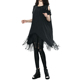 2017春季新品欧美仿旧水洗宽松短袖中长款流苏大码露肩T恤潮