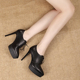 2017秋冬季新款韩版防水台超高跟鞋尖头短靴细跟及裸靴子女鞋厚底