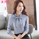 冰子云2017春秋职业装衬衫女长袖白衬衫女装蝴蝶结领大码衬衣女