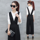 2017新款夏装女装名媛气质背带裤阔腿裤时尚套装女潮两件套小香风