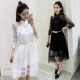 2017年春夏新款中长款蕾丝长袖收腰显瘦性感连衣裙修身打底裙女装
