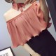 春夏新款女装一字肩领漏肩露肩性感挂脖雪纺衫荷叶摆上衣