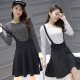 2017春装新女条纹圆领时尚修身韩版百搭宽松两件套背带连衣裙女装