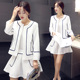 2016春装新款两件套装裙子女短裙百褶裙修身显瘦九分袖外套女装