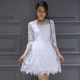 2016春款蕾丝连衣裙韩版七分袖打底裙中腰中长款碎花名媛打底女潮