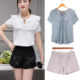 套装女夏装时尚潮名媛雪纺衫短袖休闲宽松气质个性甜美两件套短裤
