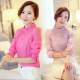 雪纺衫女2016春装新款韩版修身长袖立领纯色显瘦小衫女打底衫包邮