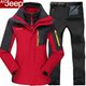 冬季冲锋衣套装男两件套三合一登山服外套加绒保暖冲锋裤男加大码